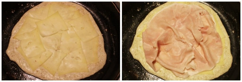 • A continuación, corta en rodajas finas la fontina y colócala sobre la focaccia y cubre con las lonchas de jamón cocido.