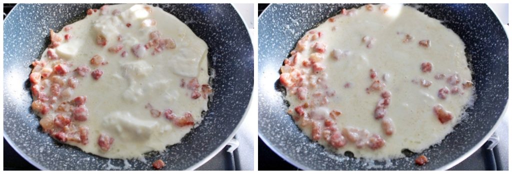 Si no les gusta, pueden utilizar panceta dulce, jamón cocido o speck. A mí me gusta el sabor de la panceta ahumada porque contrasta bien con el sabor «dulce» del stracchino.