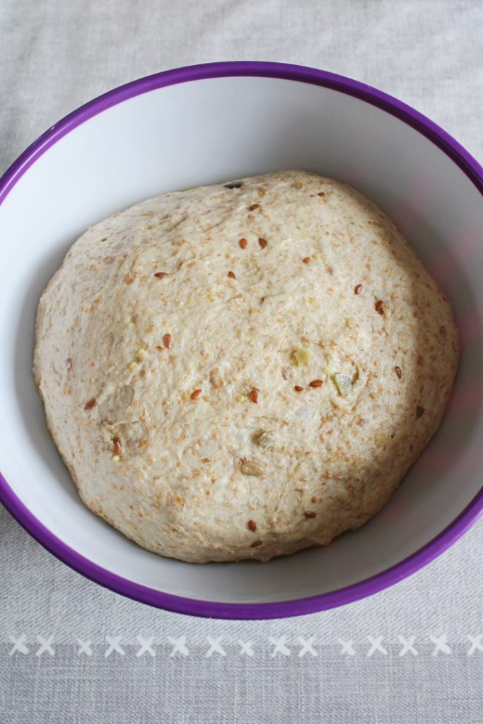 En este punto, sacad la masa de la amasadora y formad una bolita que dejaréis reposar, cubierta, en un bol ligeramente aceitado durante unas 2 horas.