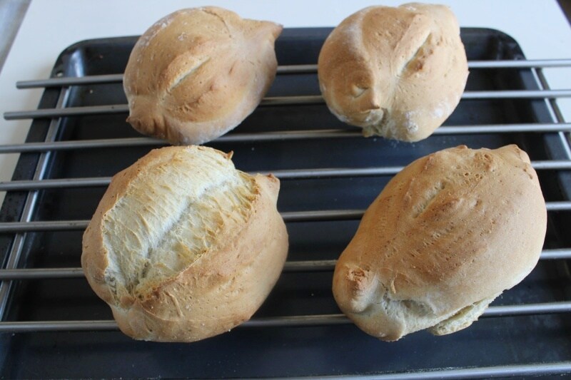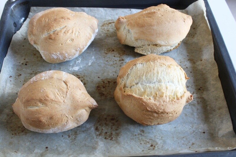 • Encended el horno a 200°C. Colocad cuidadosamente los panecillos sobre una bandeja forrada con papel de horno e introducidlos en el horno ya caliente, durante unos 30-35 minutos.