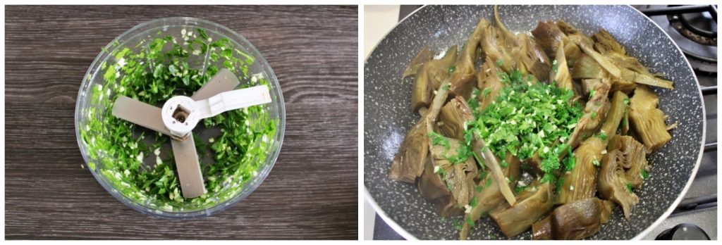 Casi al final de la cocción, salad a gusto y añadid el perejil y el’ajo picados con una picadora con cuerda, luego mezclad suavemente y completad la cocción.