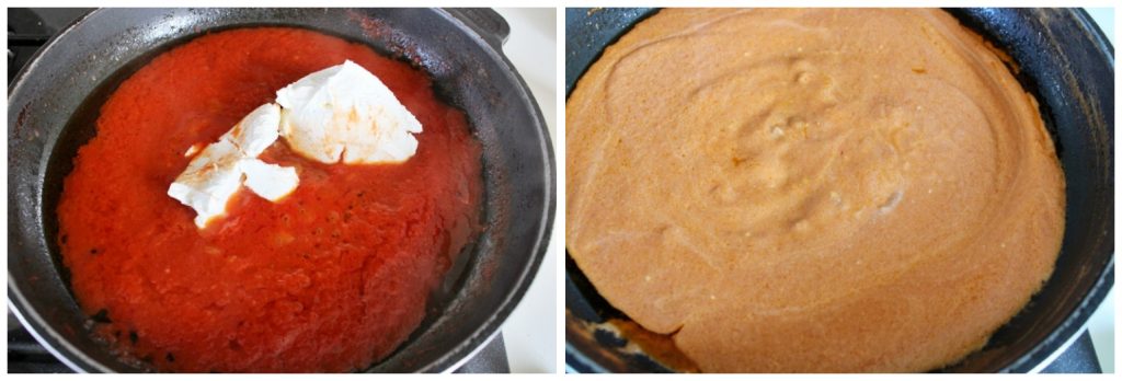• Mientras la pasta se cuece, unos minutos antes de escurrirla, añade la philadelphia (u otro queso blando para untar) a la salsa y mezcla bien.