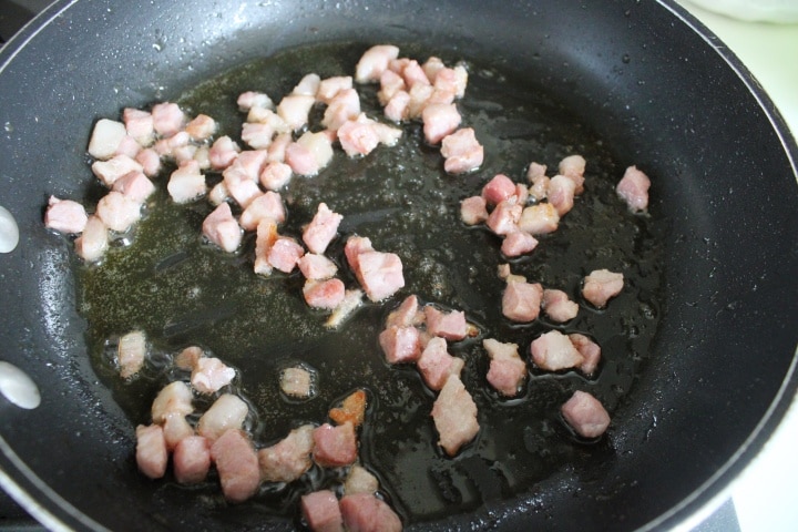 – Panceta: yo he usado la panceta ahumada. Si no te gusta, puedes sustituirla por panceta dulce o por jamón cocido en dados.