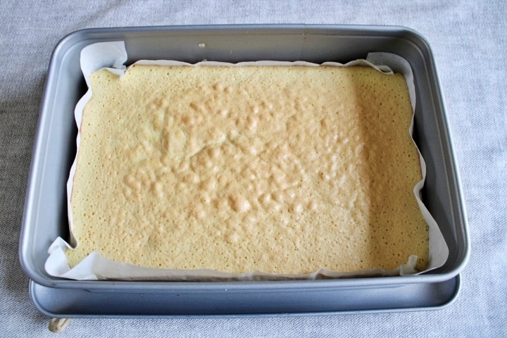 Forra una bandeja con papel de horno, vierte la mezcla y nivélala bien.