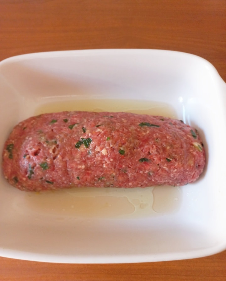 • Colocad el rollo de carne dentro de una fuente para horno aceitada, regad con medio vaso de vino blanco y hornead a 180°C en horno precalentado durante aproximadamente 50 – 55 minutos. A mitad de cocción, girad con cuidado y si veis que se seca demasiado, regad con un poco de vino blanco. Una vez cocido, esperad unos minutos antes de cortarlo en rodajas.