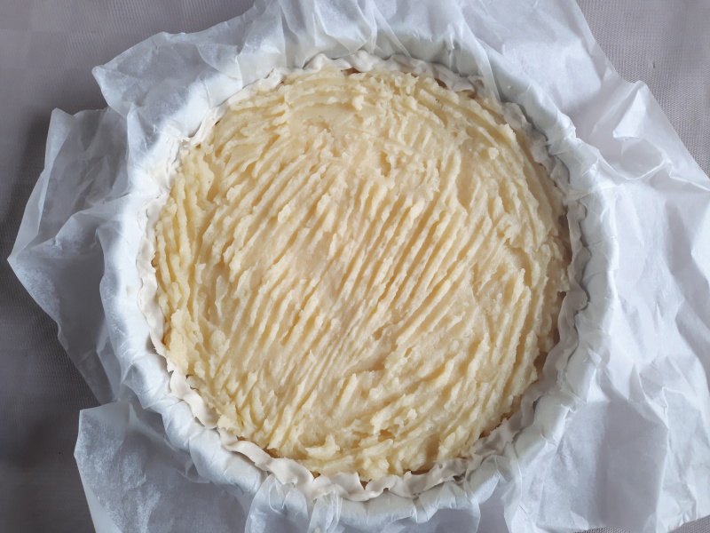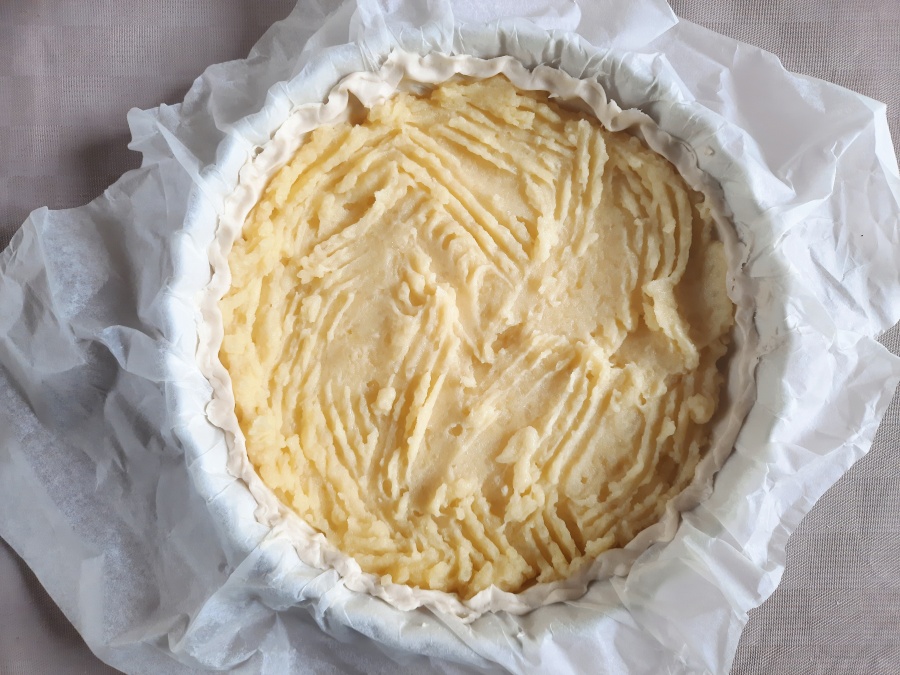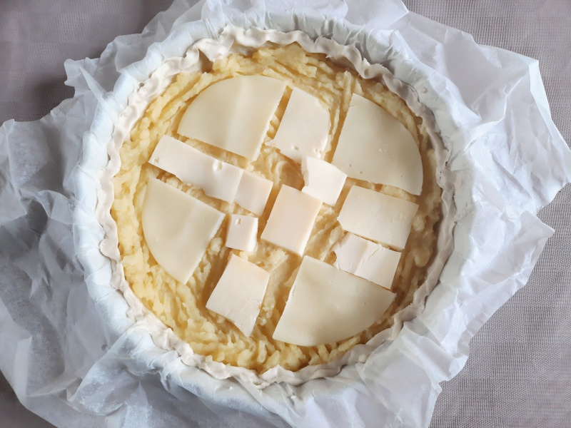 El procedimiento es simple: basta con cocer las patatas, aplastarlas y añadir 1 huevo, queso rallado, sal, mezclar y cubrir con la mitad de la mezcla el hojaldre, rellenar con queso al gusto y eventualmente embutido, cubrir con la mezcla restante, hornear durante 30 minutos y está lista para servir en la mesa!