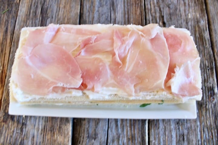• Cubre la rebanada de pan con la crema de queso, y luego con el jamón cocido entonces cubre con el pan.