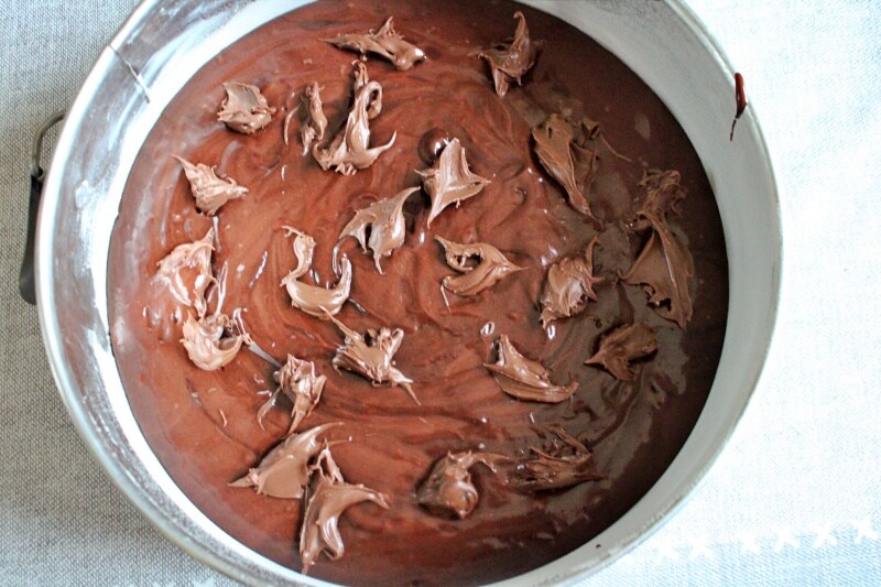 Hornead en el horno ya caliente durante unos 35 – 40 minutos. Haced siempre la prueba del palillo, insertándolo en las zonas donde no haya Nutella. A mí me llevó 42 minutos.