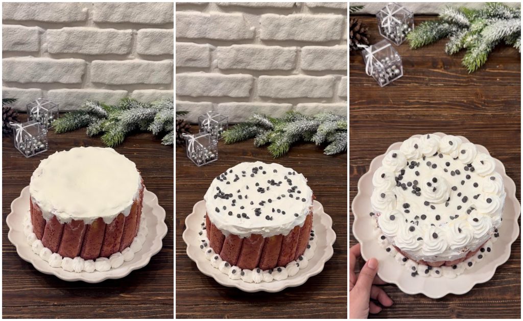 La Charlotte de Navidad está lista para ir a la mesa y dejar a todos sorprendidos al momento del corte!