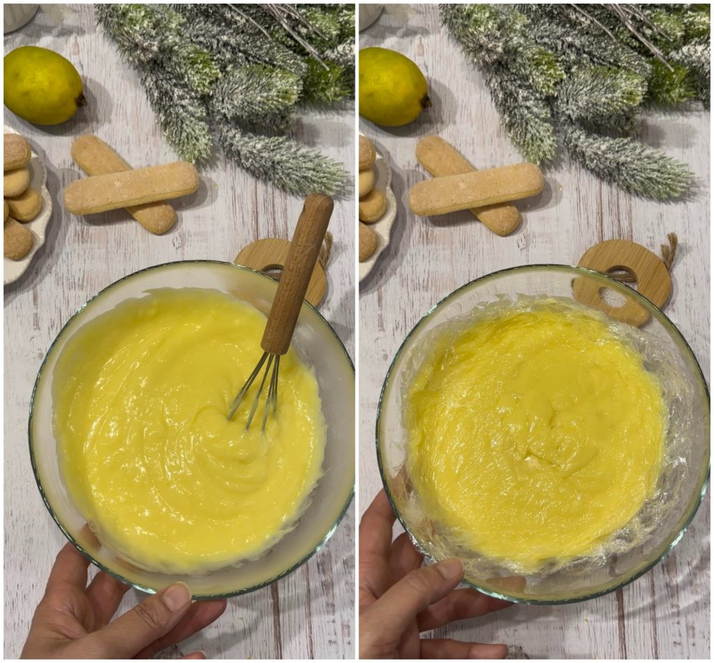 Comenzamos con la crema pastelera que deberá luego enfriarse ligeramente antes de montar el dulce.