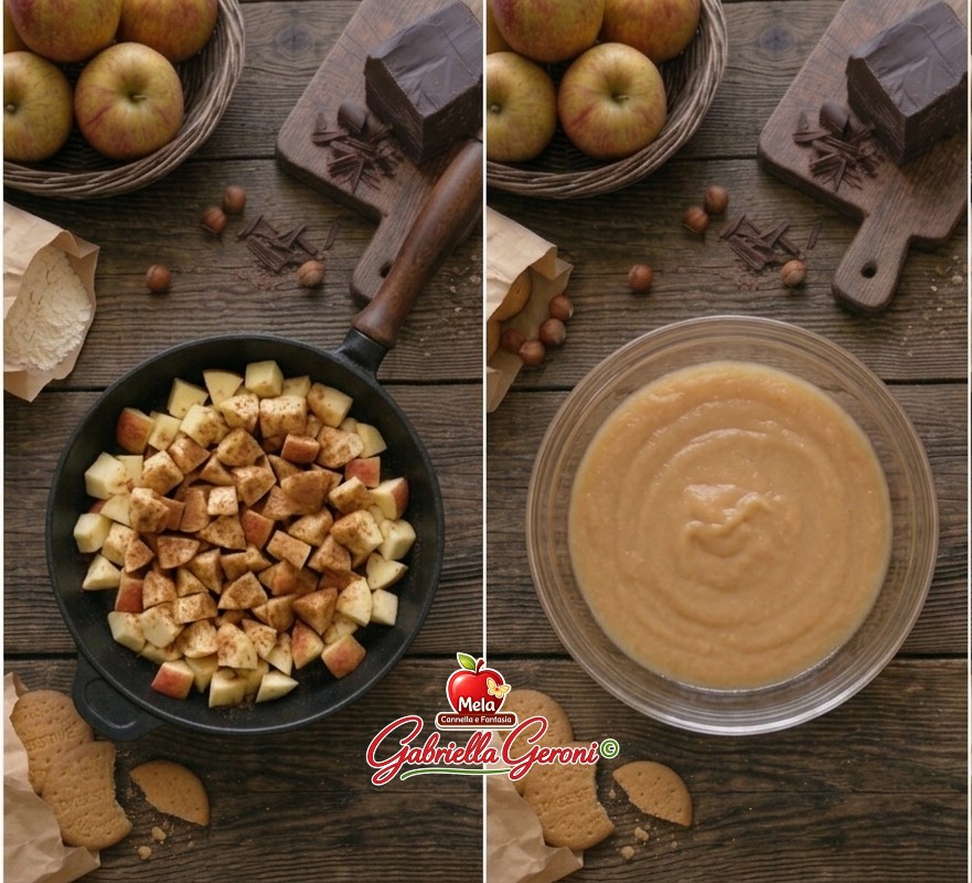 • Añade luego la canela y las manzanas y cocina durante 5/10 minutos, las manzanas deben quedar firmes. Déjalas escurrir en un colador.