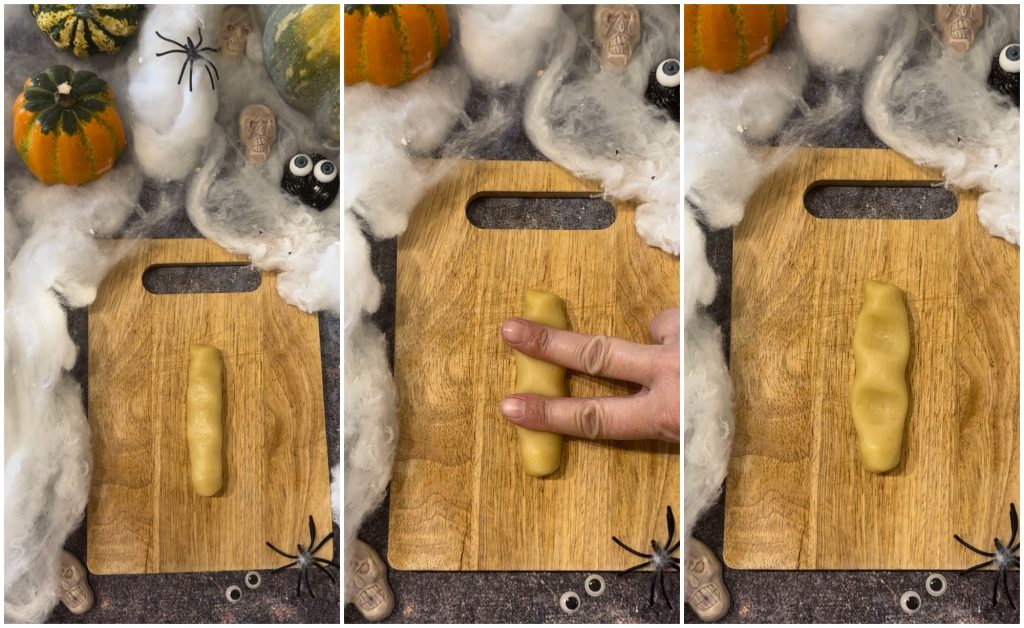 Transcurrido el tiempo de reposo, recupera la masa para formar los dedos de bruja!