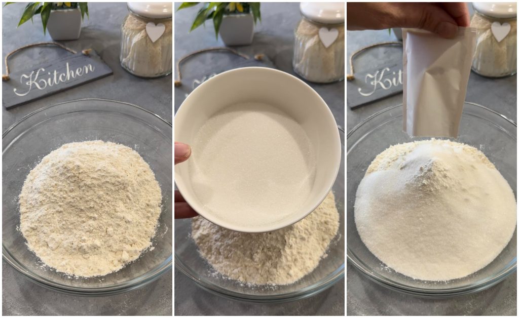 Comienza a mezclar todos los ingredientes primero con un tenedor. Cuando la harina haya absorbido bien los líquidos, amasa con las manos.