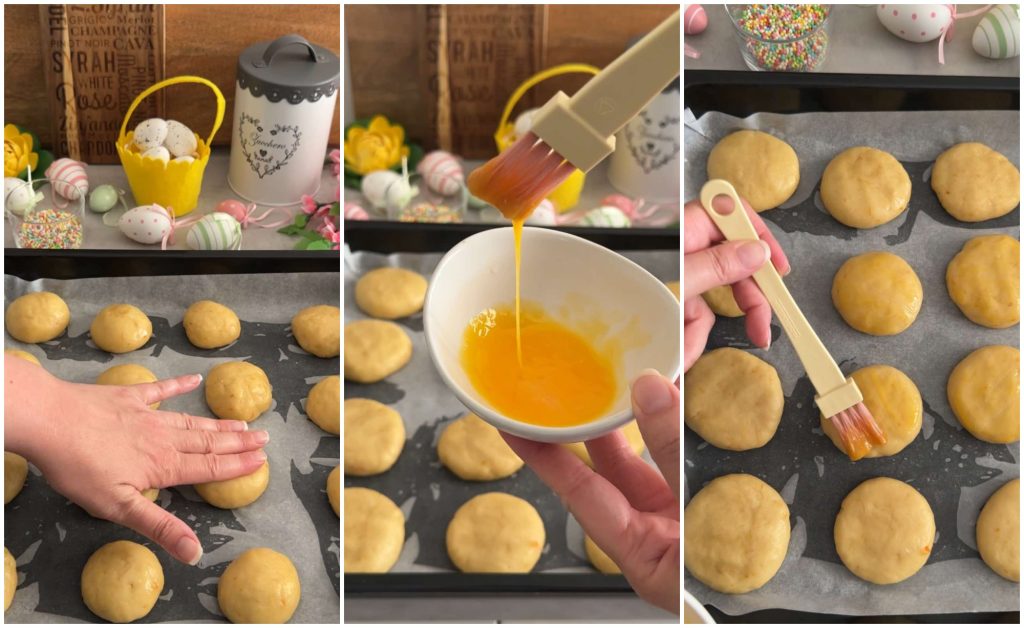 Continúa de la misma manera hasta agotar toda la masa. En este punto, con los dedos haz una ligera presión en la superficie de todas las galletas para aplanarlas.