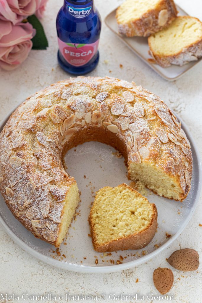 ¡Esta mañana desayuné con una rebanada de Rosca al zumo de fruta! ¡No os podéis imaginar el aroma maravilloso que había en la cocina! La rosca al zumo de fruta es esponjosa y sin mantequilla. Perfecta para quienes tienen intolerancia a la lactosa y para quienes están a dieta. Es un dulce sencillo, el clásico pastel de despensa, genuino y ligero. Yo elegí el zumo de fruta de melocotón. ¡Se pueden usar otros sabores según nuestras preferencias! Hace tiempo preparé el bizcocho al zumo Ace, ¡realmente sabroso! Hoy, en cambio, os propongo la versión al zumo de fruta de melocotón. ¡En casa le gustó a todos! El bizcocho al zumo de fruta se prepara en un abrir y cerrar de ojos. Se mantiene blando y aromático durante días. Basta con conservarlo bajo una campana para pasteles. O bien, para evitar desperdicios innecesarios se puede congelar (lee al final del artículo cómo hacerlo). El pastel muy blando al zumo de fruta se puede enriquecer con frutos secos o chispas de chocolate. Prueba también la versión vegana del bizcocho con zumo de fruta sin huevos.