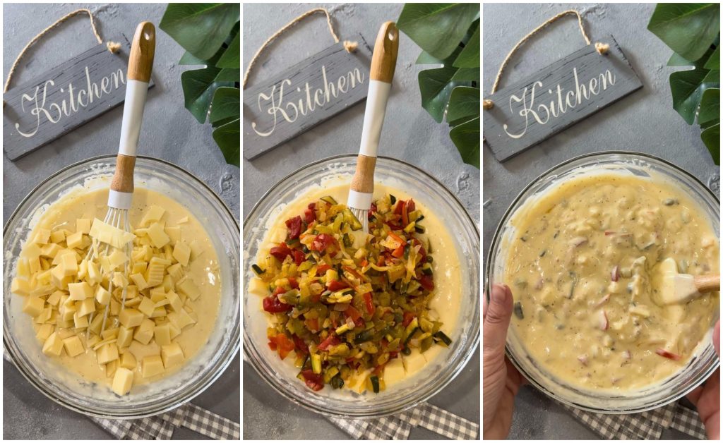 Mezcla bien y en ese momento deberás agregar las verduras bien escurridas y los quesos previamente cortados en trozos pequeños.