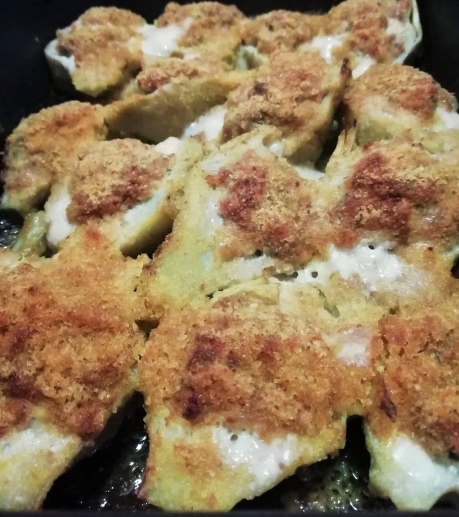 Las alcachofas rellenas al horno son un acompañamiento sabroso que se puede servir también como un segundo plato único. Las alcachofas se rellenan con salchicha, parmesano y aromas, se preparan fácilmente y la cocción es rápida. Te aconsejo probar otra receta sabrosa con salchicha los caramelos rústicos de patata y salchicha.