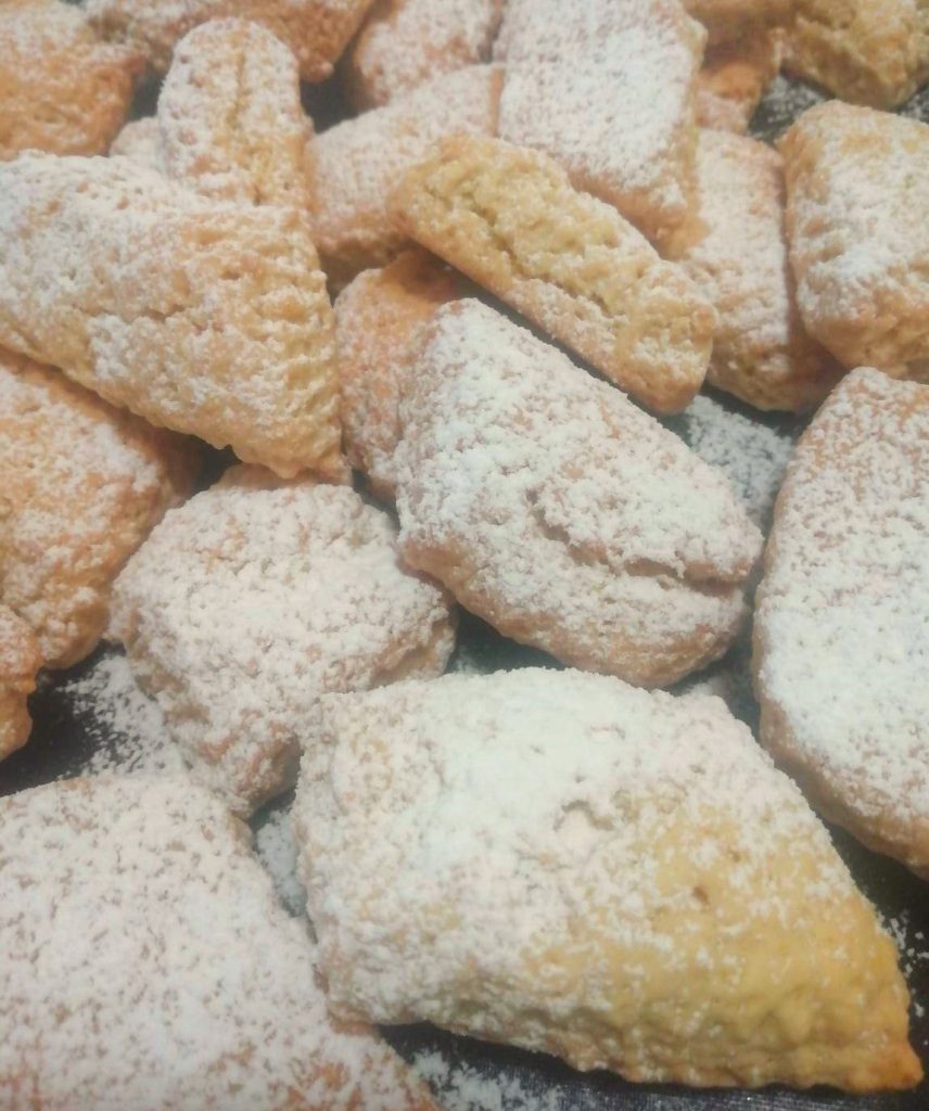 4 – Hornea los biscotazos de coco en el horno precalentado a 170° durante 20 minutos, hasta que estén ligeramente dorados. Sácalos del horno, déjalos enfriar y espolvoréalos con azúcar glas. Se conservan durante muchos días en un frasco de vidrio cerrado, pero también se pueden congelar.