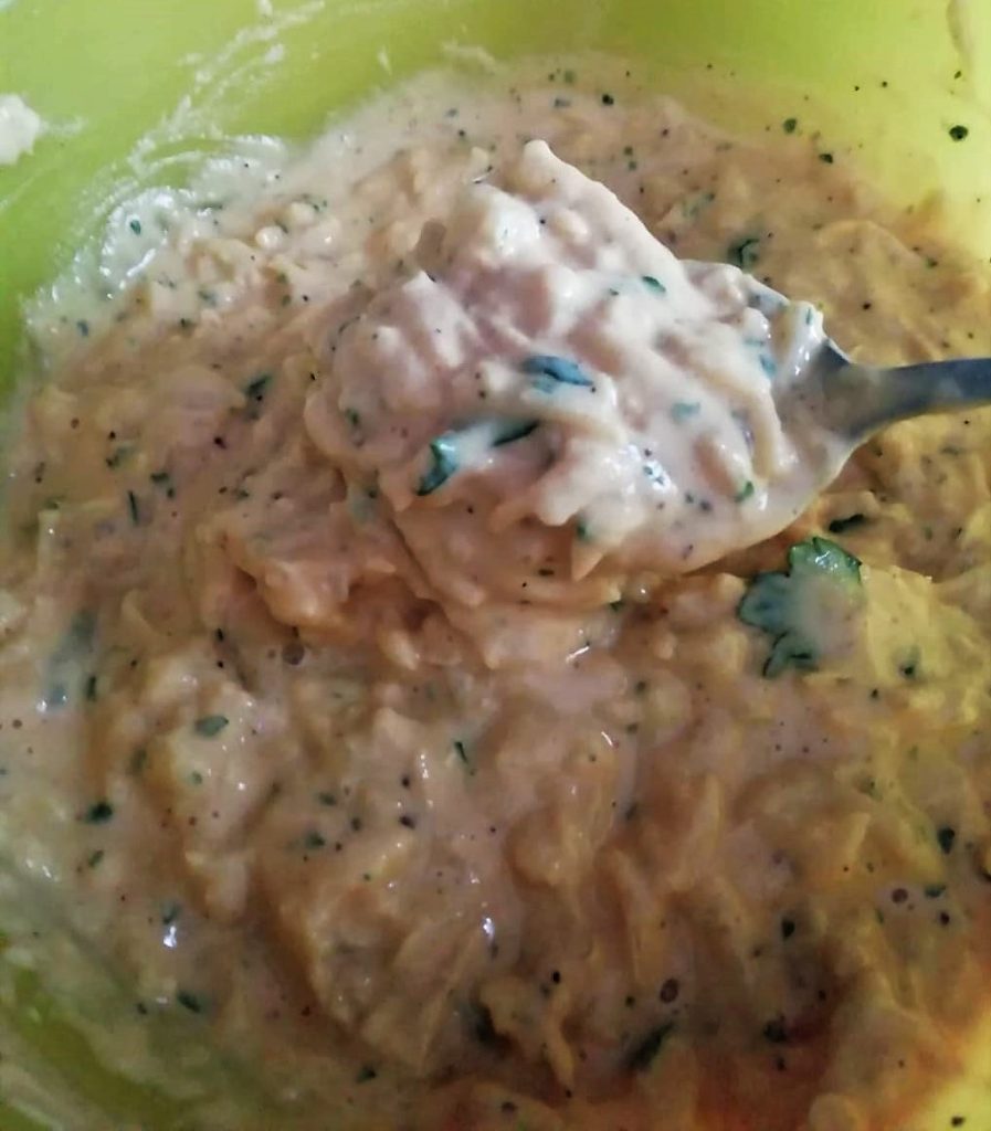 Transcurrido el tiempo de reposo de la masa, incorporad las verduras ralladas, añadid el ajo en polvo y salad al gusto. Mezclad bien la masa.