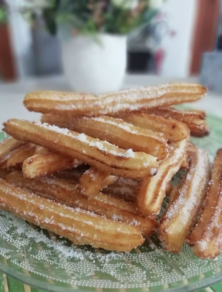Para quien no lo sepa, los churros son un tentempié, a base de masa frita, muy utilizados en España y en América Latina. Se venden en auténticas churrerías, algunas históricas, espolvoreados con azúcar. Imagínatelos en el desayuno sumergidos en el chocolate caliente con canela hecho por ti con la mezcla ya preparada (ver receta en el enlace).