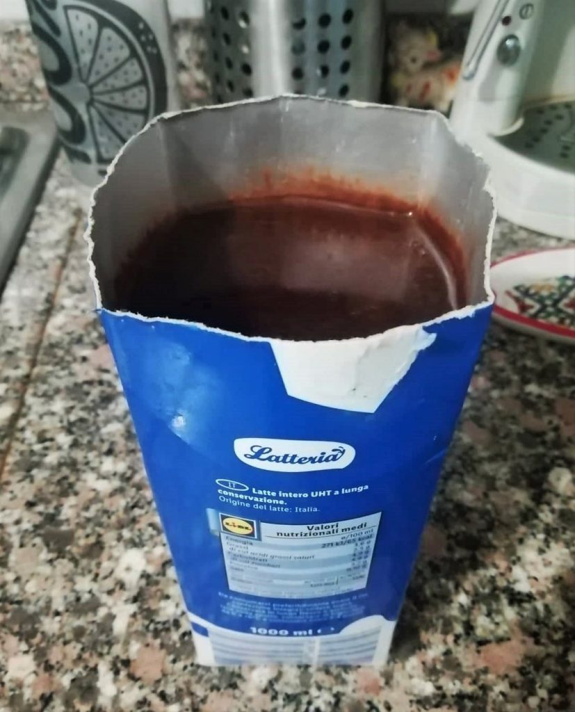 Prepara un molde para flan, o créalo simplemente con un contenedor de cartón de un zumo de frutas o de leche, cortando la parte superior del brick.
