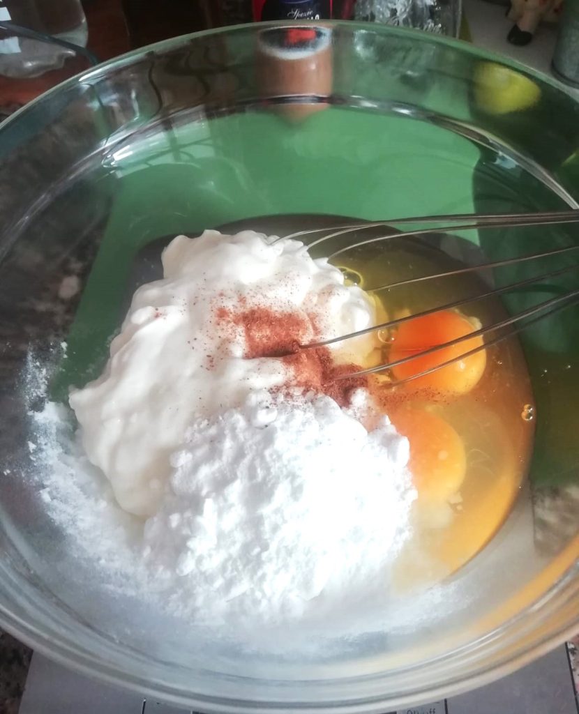 Pon todos los ingredientes en un bol y mezclalos bien usando una batidora.