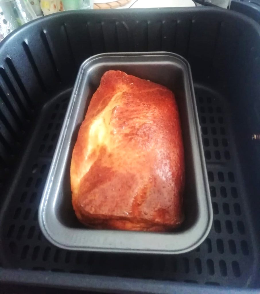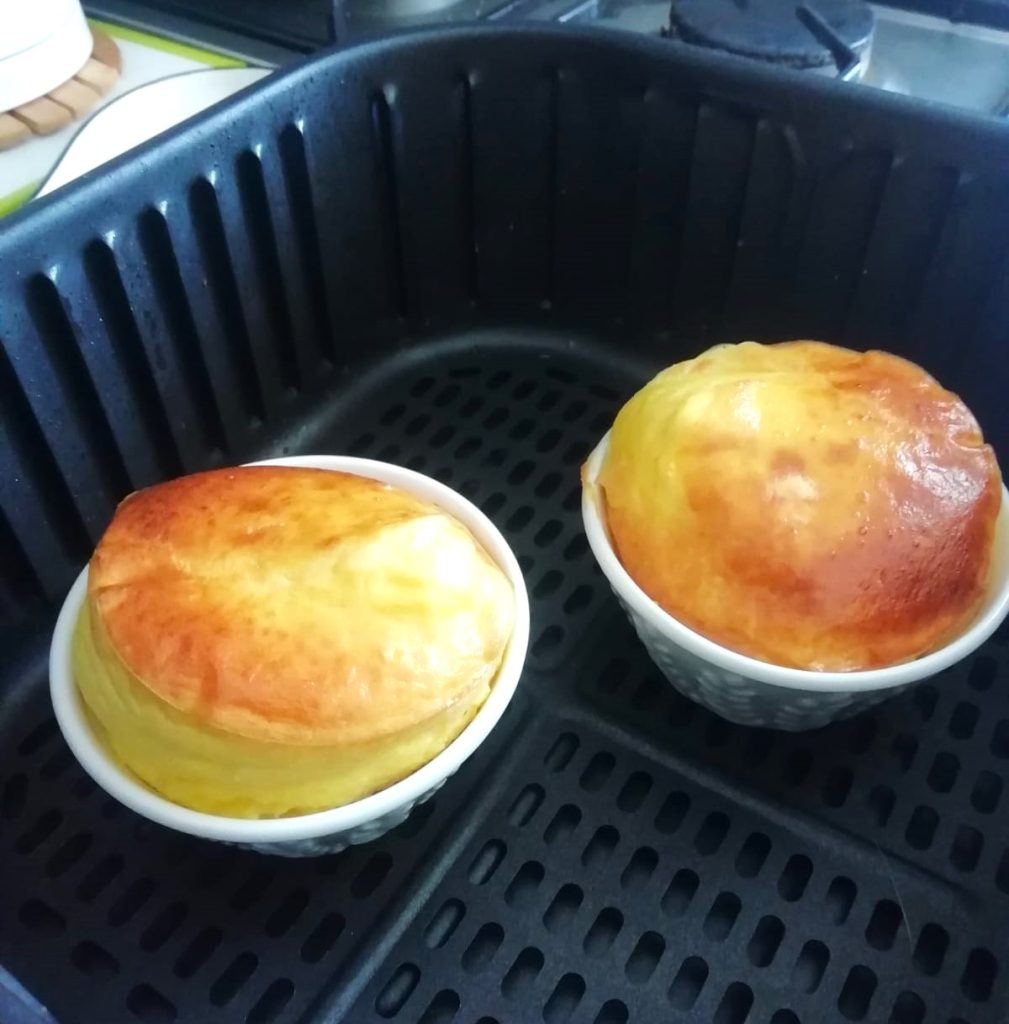 Pon el molde en la cesta de la freidora de aire y cocina el flan a 160° durante 26 minutos. La prueba del palillo es siempre válida para comprobar la cocción completa, aunque no se trate de un bizcocho, si sale seco el flan está cocido.