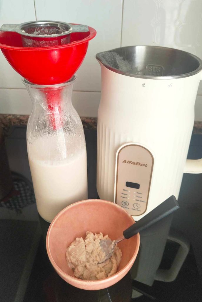 5 – Al terminar el ciclo, filtra la leche con un colador de malla fina o una bolsa para leche vegetal.