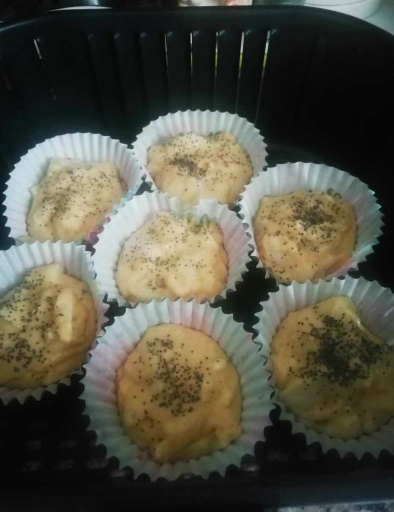 Pon los moldes de papel en la cesta de la freidora de aire, sin engrasarlos con aceite o spray desmoldante.