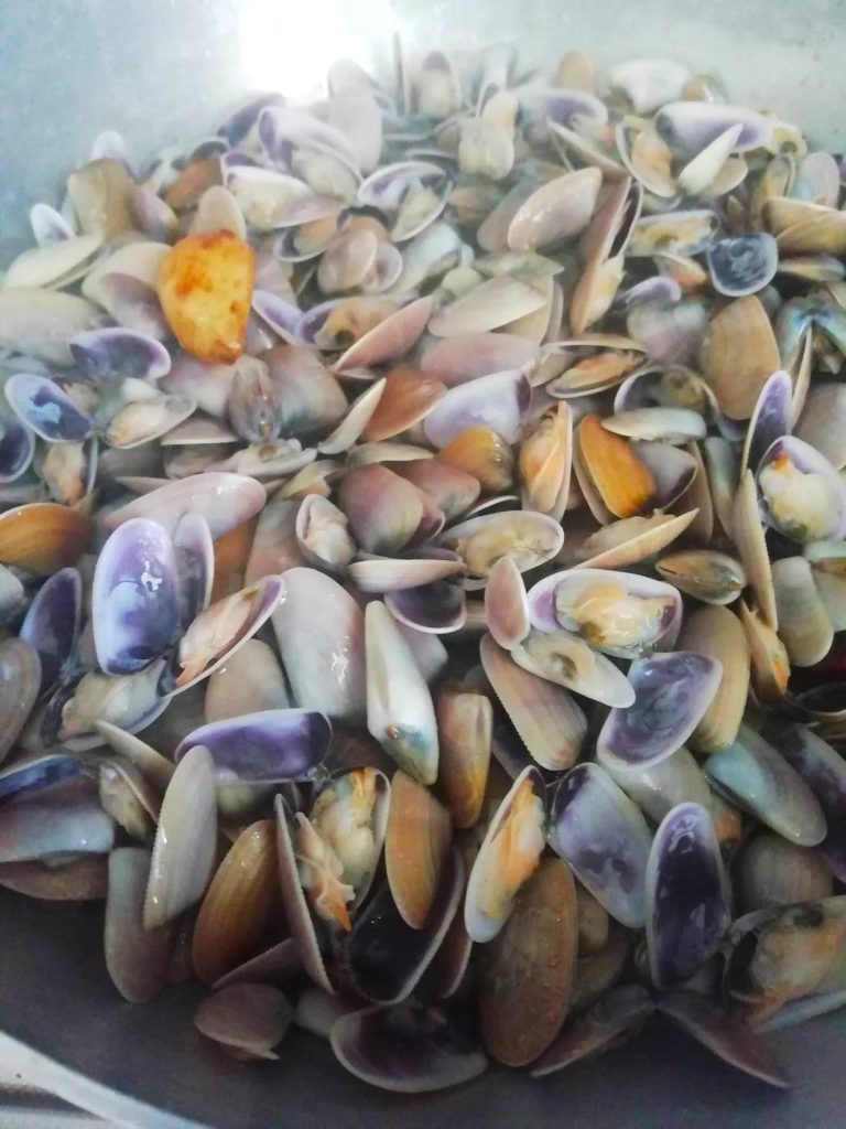 La pasta con chirlas, ya sea hecha con espaguetis o linguine, recuerda a todos el mar de la infancia. Cuando nos sentábamos en la orilla y enterrábamos las manos en la arena para recoger tantas chirlas como pudiéramos, y luego las guardábamos en botellas de plástico con agua de mar para llevarlas a casa. Buenos tiempos, despreocupados, con deliciosas chirlas recolectadas para pasar el tiempo, hoy compradas en los departamentos de pescadería evocan igualmente esas sensaciones felices.