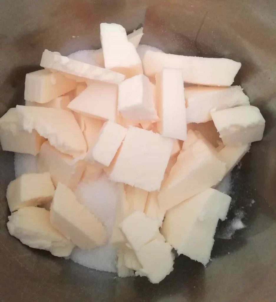 En un bol grande, verted la ricotta tamizada, unid el azúcar, los huevos y los otros ingredientes Mezclad bien el compuesto hasta que sea liso y cremoso. Podéis usar también el Bimby vertiendo todo en el vaso con una breve batida a velocidad mínima de amasado.