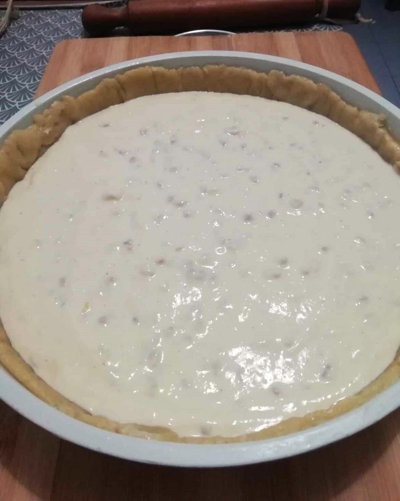 Precalentad el horno a 170° y coced la pastiera en la rejilla central durante 1 hora. Cuando la masa esté cocida y dorada, apagad el horno y dejadla reposar en su interior hasta que esté fría.