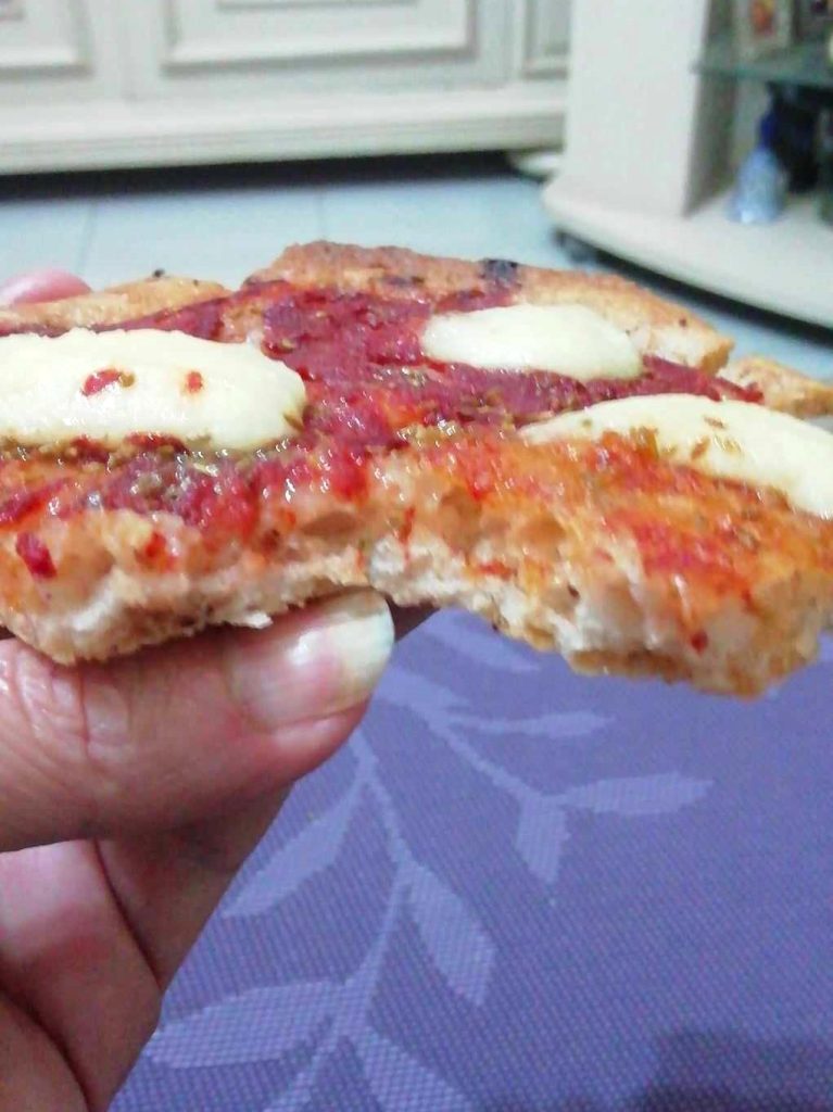 Además, la hidratación de las pizzas sin gluten es siempre alta, por lo que recomiendo usar como mínimo el 80% de agua u otro líquido, en esta masa es más del 90%. Finalmente, siendo una masa sin gluten, la levadura encuentra poco alimento del cual nutrirse, por lo que no considero realizar una larga fermentación, la miel que añado y la goma de guar dan su pequeña contribución para liberar gas y alveolar suficientemente la pizza.