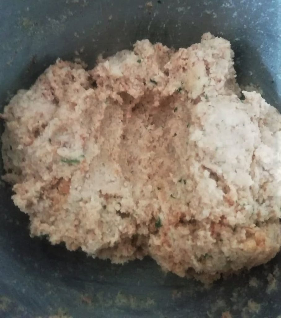 Después de que el pan se haya ablandado en la leche, escurridlo y unid las patatas machacadas.