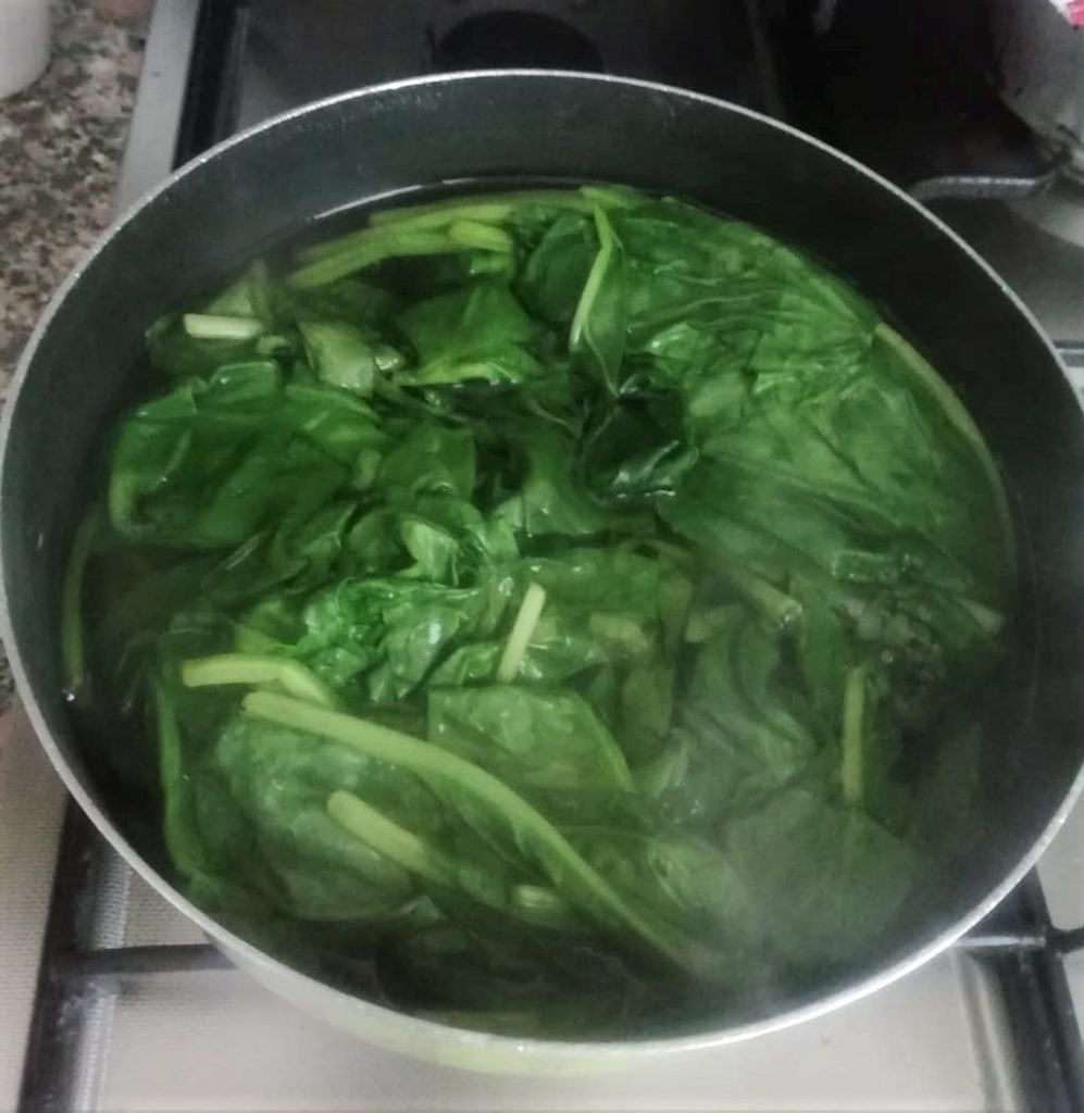 - 300 g espinacas, cocidas, hervidas
