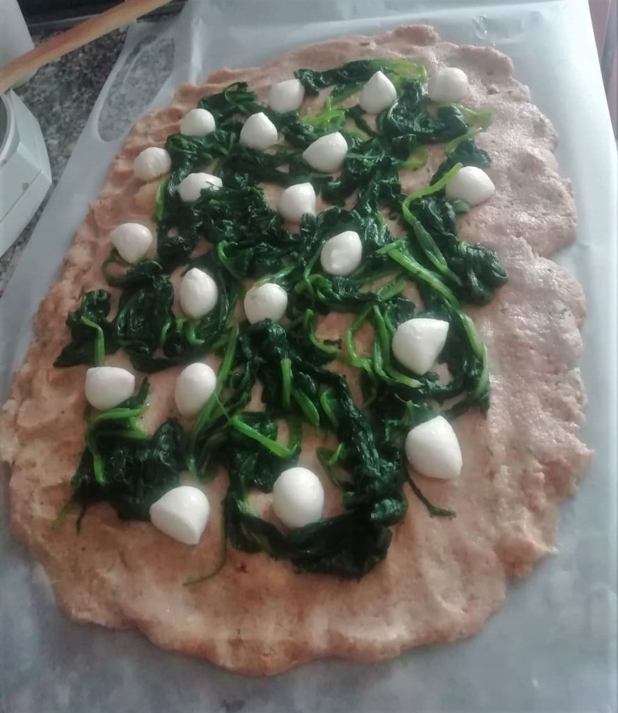 Colocad encima las espinacas, las bolitas de mozzarella u otro queso al gusto, o queso parmesano rallado.