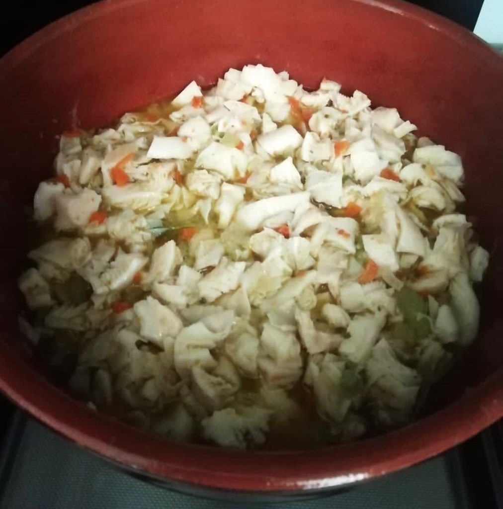 • Lava abundantemente la tripa precocida bajo el agua corriente, luego colócala en un bol con agua y un chorrito de vinagre blanco y déjala reposar durante aproximadamente media hora.