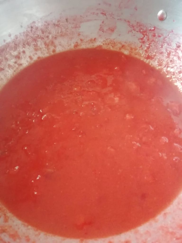 Deja cocinar las fresas durante 5-7 minutos aplastándolas de vez en cuando con un tenedor, hasta que se conviertan en una salsa cremosa. No dejes que reduzca demasiado.