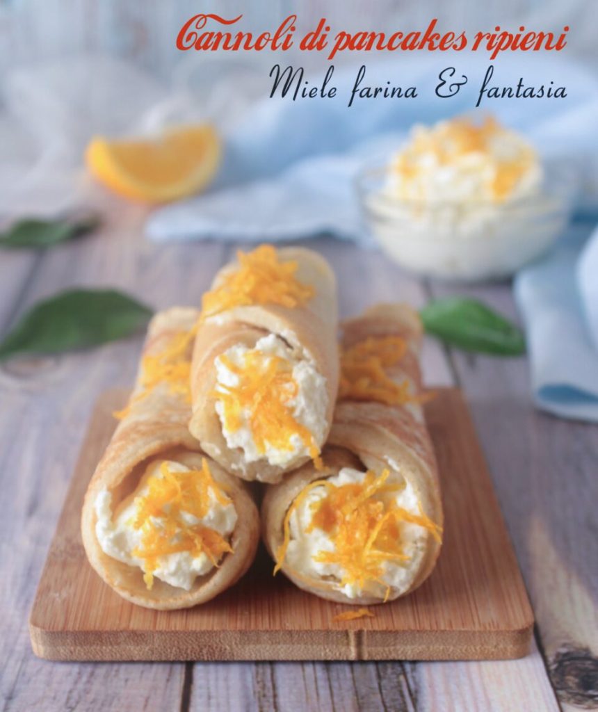 Un postre deliciosísimo y fácil de realizar es lo que os propongo hoy, los cannoli de pancakes rellenos con una exquisita crema de naranjas. Los he llamado «cannoli» solo por su forma, que recuerda a la de los famosísimos cannoli sicilianos, uno de los orgullos de la pastelería italiana. Estos dulces vistosos son perfectos para una ocasión especial, como postre del domingo y así sucesivamente. Los cannoli de pancakes con crema de naranja se agotarán rápidamente.