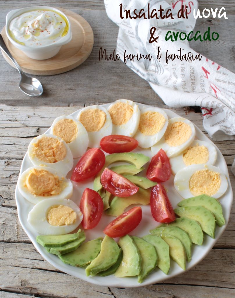 La ensalada de huevos duros y aguacate es una receta facilísima, muy sabrosa, coloridísima, para considerar como plato único que reúne guarnición y segundo plato en un solo plato, pero también se puede servir como entrante. Se puede personalizar como más nos guste, según nuestras necesidades y gustos personales. La ensalada de huevos y aguacate no contiene gluten ni lactosa, porque la deliciosa salsita que servirá de aderezo está hecha a base de yogur griego magro sin lactosa. Disfrutémosla fría o como almuerzo para llevar al trabajo o en el tiempo libre y se puede preparar con mucha antelación, excepto el aguacate que se debe añadir solo un poco antes de servirla, para evitar que se oxide.