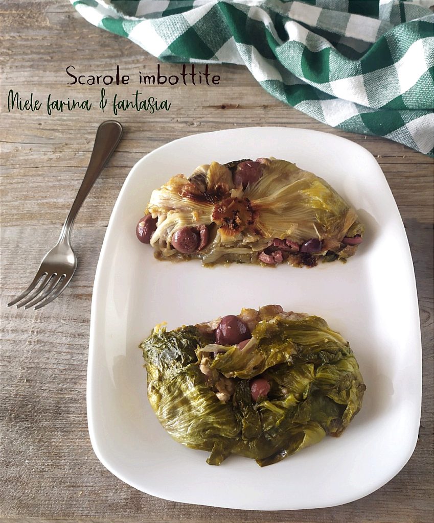 Hoy os hablaré de una de las recetas favoritas de mi madre, la escarola rellena, un acompañamiento de la tradición culinaria napolitana hecho con escarola o endibia de hoja lisa, y un relleno que puede variar según la zona. La preparación que os voy a mostrar está basada exclusivamente en los gustos de mi familia, que me parece ligera y muy sabrosa. Cada uno tiene su propia receta de la escarola rellena o, dicho de otro modo, de la «scarol mbuttunat». En algunas preparaciones, de hecho, hallaréis en el relleno huevo, pasas sultanas, parmesano o pecorino. Yo, en cambio, la preparo así; también podéis personalizar la escarola rellena según vuestras necesidades. Si os gusta esta hortaliza, aquí tenéis algunas ideas ricas para cocinarla.