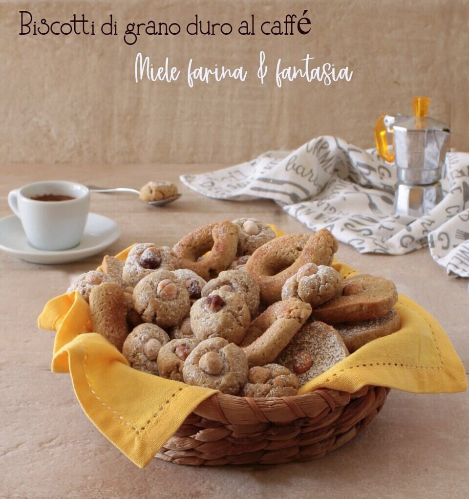 Hoy os propongo unas deliciosas y fragantes galletitas de café que no contienen lactosa y han sido realizadas con sémola de trigo duro molida de nuevo. Estas galletas son facilísimas y pueden acompañar el desayuno y la merienda; o bien ser mojadas en leche, en café (si como a mí, no os basta con el que ya llevan las galletas), en chocolate o en té. Se pueden conservar en una bolsa para alimentos o en una caja de lata durante varios días.