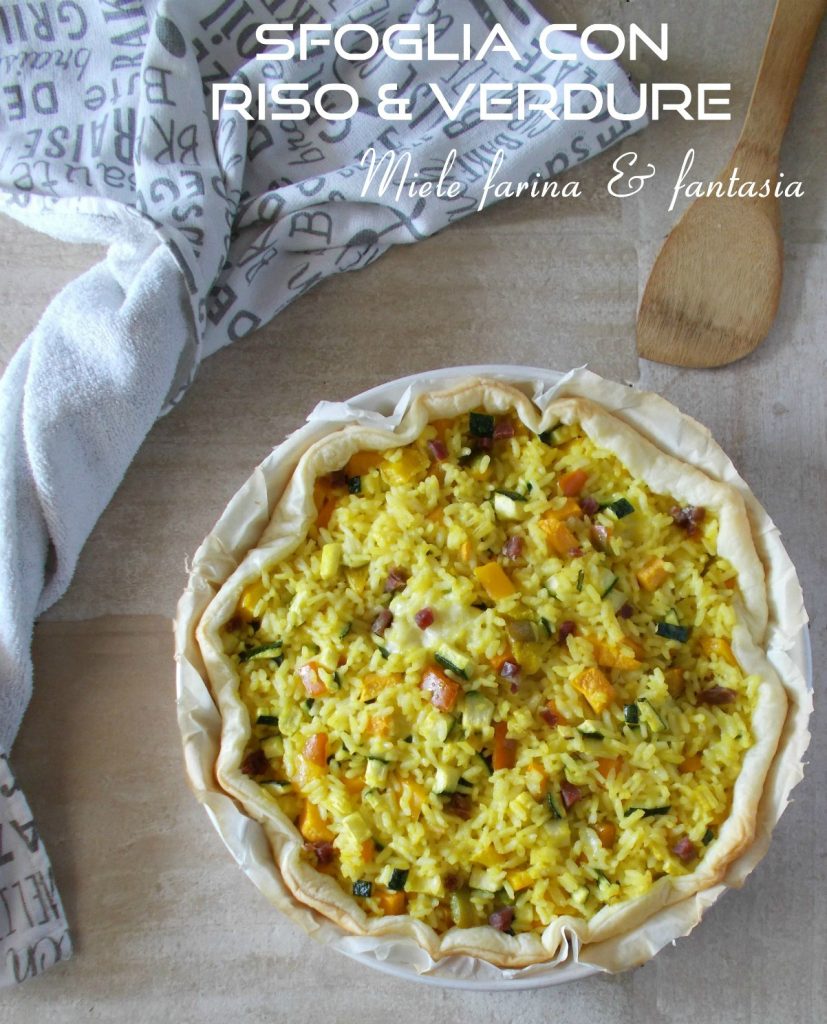 ¿Te apetece una tarta rústica y sabrosa? El hojaldre con arroz, verduras y jamón es un plato único abundante, una tarta salada rellena, ideal para la cena, una excursión, fiestas o bufés. También podemos prepararla para aprovechar sobras de embutidos y/o verduras. La base es de masa de hojaldre pero también podemos utilizar como «contenedor» la masa brisa, la pasta matta o una masa quebrada para recetas saladas. El hojaldre con arroz y verduras es una receta colorida, alegre y le gustará incluso a los niños, que normalmente no ven con buenos ojos las verduras.