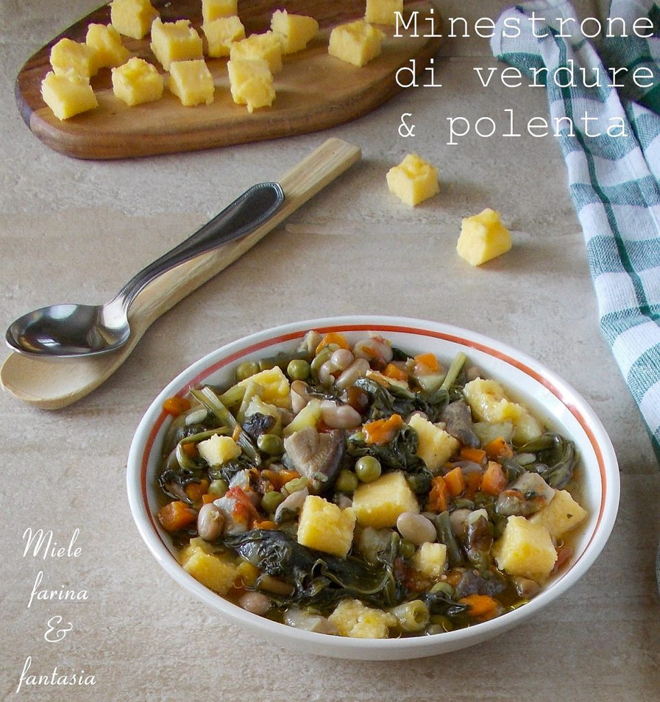 El minestrón de verduras y polenta es un plato completo, ligero pero, al mismo tiempo, extraordinariamente sabroso y aromático gracias a la variedad y riqueza de ingredientes. Esta es una receta de reciclaje, nacida para consumir el minestrón y la polenta sobrantes; el resultado fue más que excelente. El minestrón de verduras y polenta es fácil y se prepara en poco más de una hora. Las verduras y hortalizas pueden elegirse según los propios gustos y la estacionalidad. Es un plato que debe disfrutarse caliente, reconfortante, un verdadero comfort food. Podemos usar también los minestrones disponibles en el mercado.