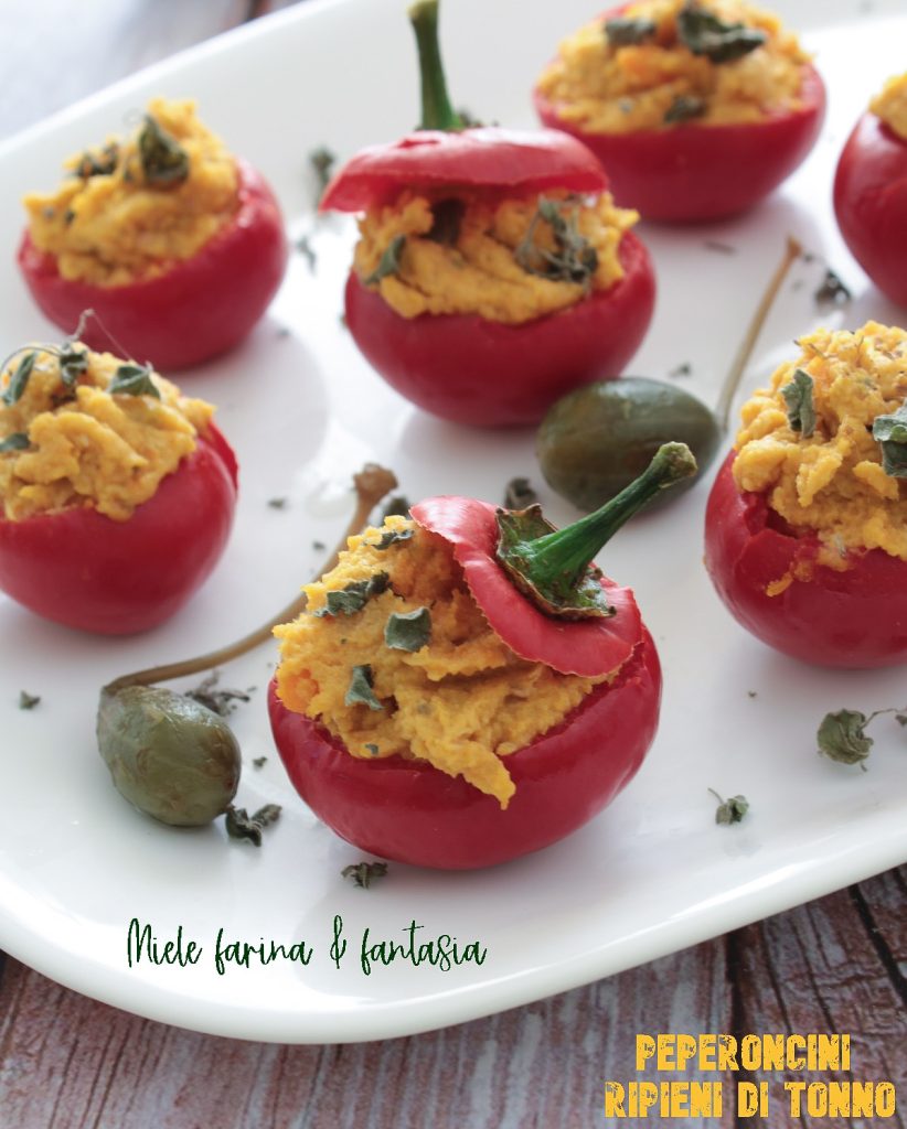 Los pimientos pequeños rellenos, redondos y dulces, son una verdadera delicia, unos bocadillos deliciosos, tentadores y aromáticos, para servir fríos como aperitivo finger food, guarnición o segundo plato. Son sabrosos, bonitos de ver, facilísimos y rápidos de hacer; además, se pueden preparar con bastante antelación. La receta original prevé el uso de los pimientos redondos picantes, pero he preferido utilizar pimientos dulces, para que todos los puedan disfrutar. Pruébalos también para acompañar carnes y pescados a la parrilla, asados, etc…