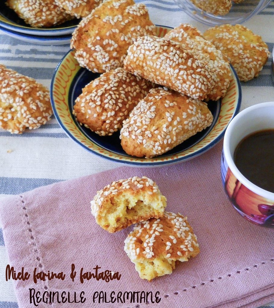 Las reginelle palermitanas son galletas típicas sicilianas muy ricas, que hay que probar absolutamente. Uno de sus ingredientes característicos es el sésamo, que les da un aroma y un sabor únicos. Las reginelle palermitanas se acompañan perfectamente con café, una taza de chocolate; o simplemente se pueden comer crujientes sin añadir nada más. Es una receta muy fácil, bastante rápida que también puede ser útil como idea de regalo. La receta que sigo para realizar estas delicias la podéis encontrar aquí.