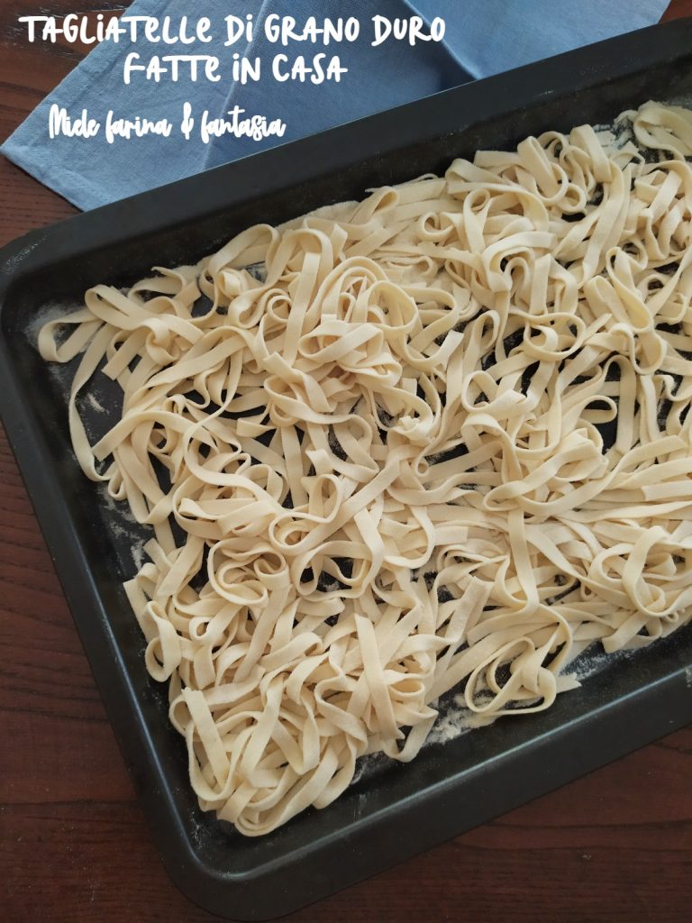 Hacer pasta fresca en casa me gusta mucho. Hoy os propongo unos tallarines de trigo duro sin huevos, muy sabrosos y más ligeros. Prefiero hacer una pasta sin huevos cuando preparo salsas importantes, más calóricas, sobre todo de carne y pescado. Podréis formar los tallarines a mano, o con una máquina para pasta. Este formato es adecuado para salsas densas, envolventes, preparadas tanto con carne o pescado; o con condimentos a base de verduras, hortalizas, frutos secos o quesos. Los tallarines de trigo duro sin huevos pueden prepararse también con anticipación y conservarse en la nevera por un máximo de dos días, bien envueltos en un paño de cocina sin olores de detergentes o suavizantes.