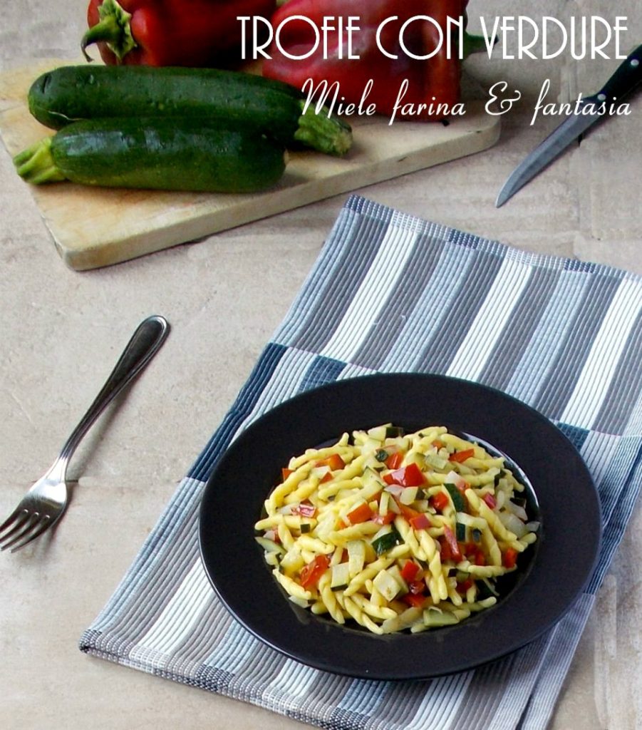 Las trofie con verduras son un primer plato completamente vegetariano delicioso y ligero que se prepara rápidamente, muy útil en caso de invitados inesperados o si tienes poco tiempo para dedicarte a la cocina. Es un plato sabroso y aromático, gracias a la presencia de la cúrcuma que combina bien con el sabor de las verduras elegidas para realizar este plato.