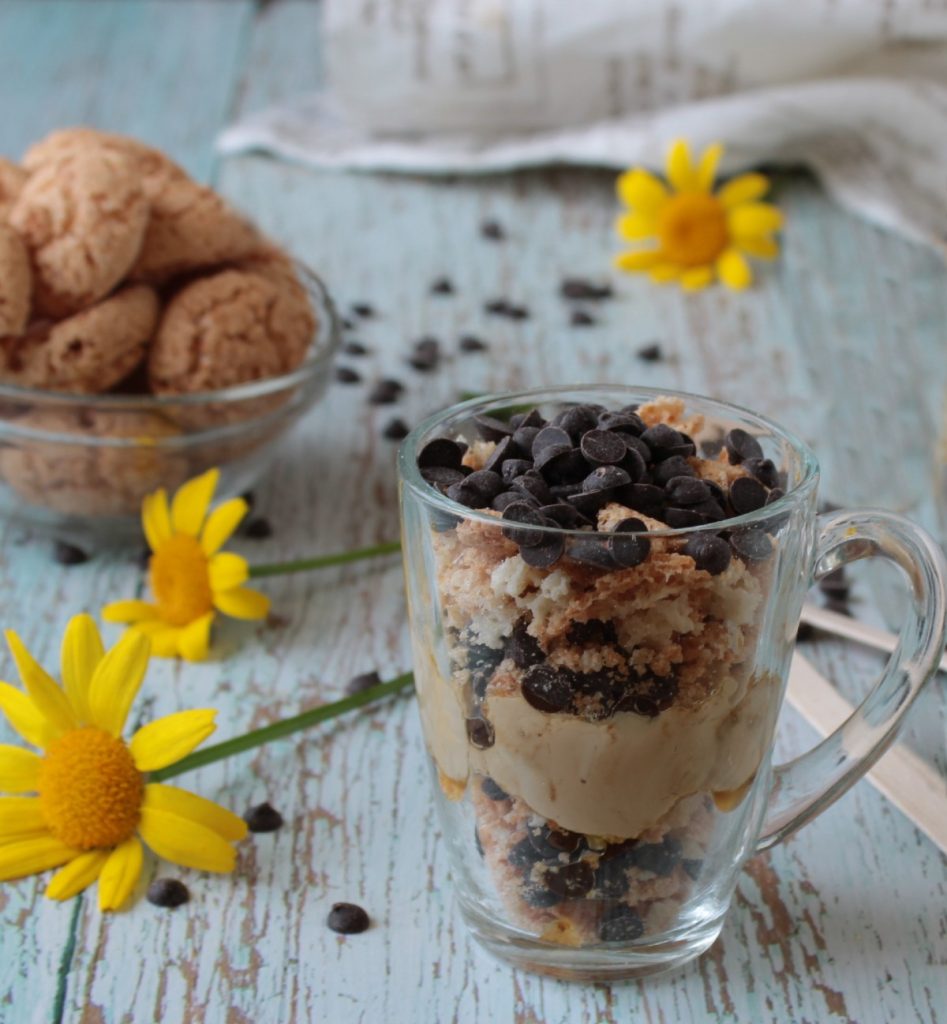 El día del padre se acerca y, si os encanta el café, hoy os propongo una idea muy fácil y rápida, además de deliciosa, para celebrarlo. Se trata de un postre en vasito sin cocción, a base de crema de café y amaretti. Solo se necesitan muy pocos ingredientes para preparar estos facilísimos y rápidos vasitos individuales, ideales para todas las ocasiones especiales y días de fiesta, postre de último minuto para invitados inesperados; o como un final de comida chic y refinado, buffet de dulces. Los amaretti combinan perfectamente con el aroma y el sabor del café, creando además un juego de texturas, cremoso y crujiente, muy agradable al paladar.