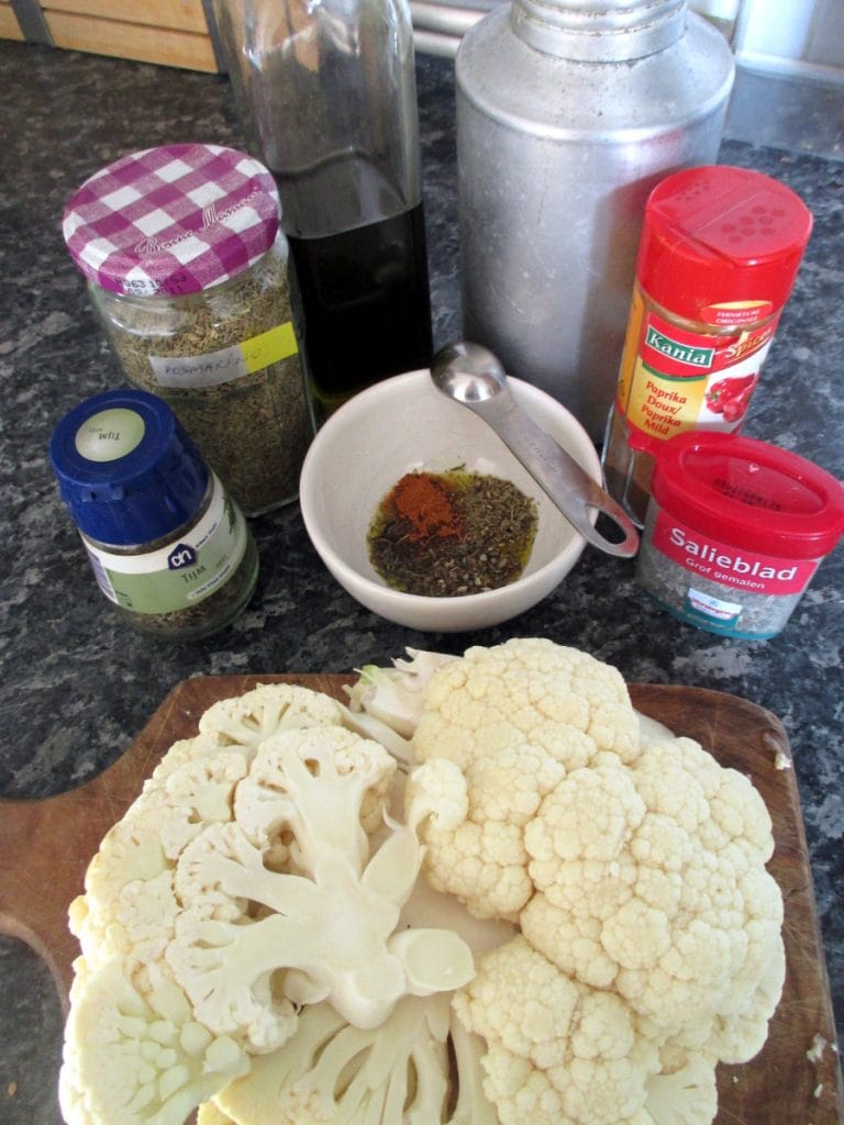 - 1 coliflor (lo suficientemente grande para obtener 4 rodajas grandes)